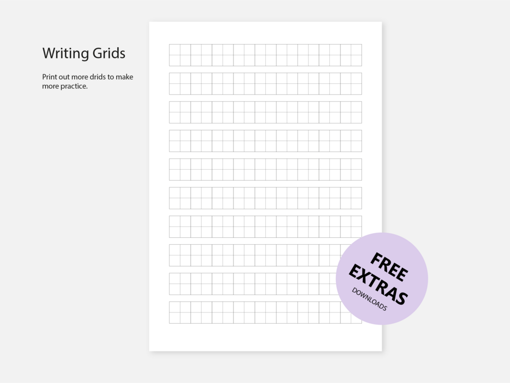 This workbook is tailored for adult beginners. If you are seeking a kid-friendly design, featuring larger grids, please visit our profile page at https://lingoblocks.gumroad.com/