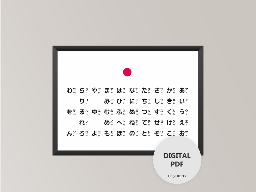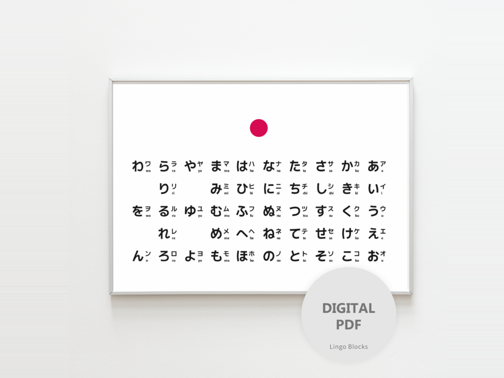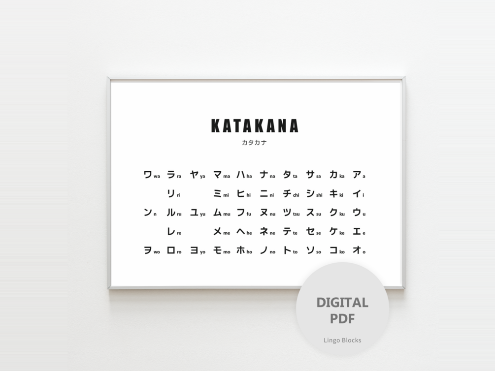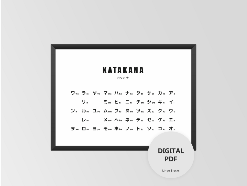 We have designed three posters for you to showcase Japanese Hiragana and Katakana in your space. One poster features Hiragana, another highlights Katakana, and the third combines both writing systems into a single design. You can display these posters wherever you prefer, as a reminder of the Japanese language and culture.