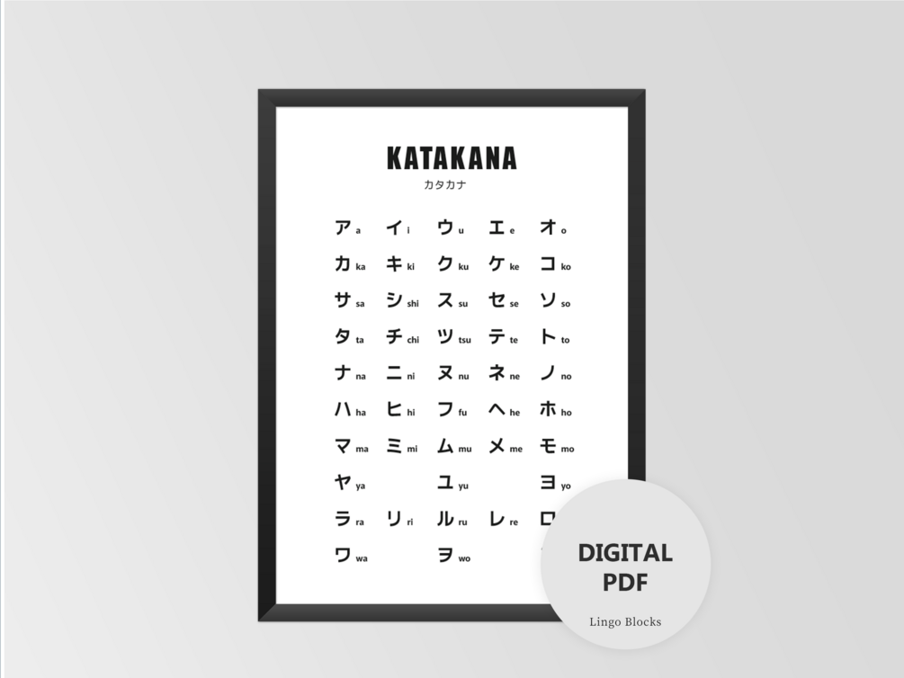 We have designed three posters for you to showcase Japanese Hiragana and Katakana in your space. One poster features Hiragana, another highlights Katakana, and the third combines both writing systems into a single design. You can display these posters wherever you prefer, as a reminder of the Japanese language and culture.